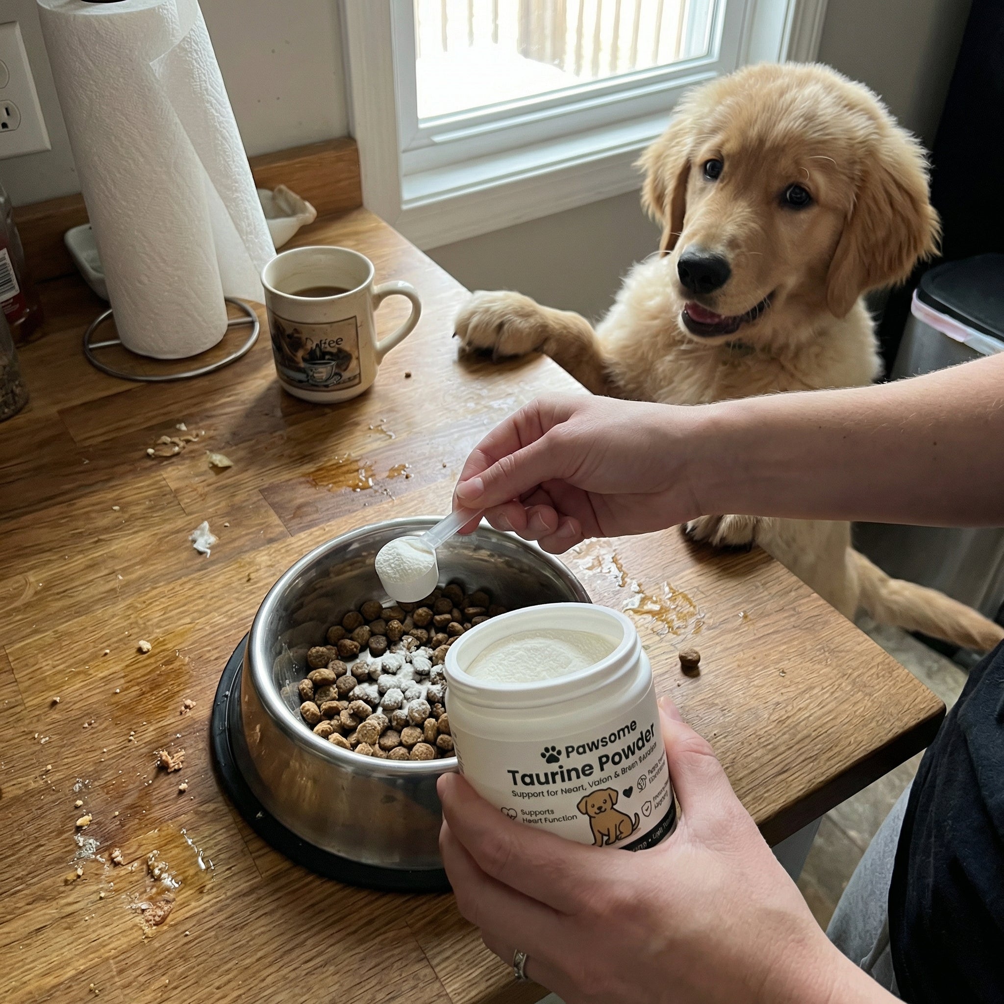 Most dog supplements come in tablets or chews packed with fillers, artificial flavors, and ingredients your dog doesn't need. Dogs often spit them out, hide them, or you're stuck playing the hide-it-in-cheese game every single day. Pawsome is a pure, unflavored taurine powder that mixes directly into your dog's food fully absorbed, zero fight.